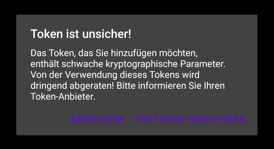 @ed_lumen die Meldung bezog sich auf Kryptographie, nicht auf die Kompatibilität mit anderen totp Tools. Ob und inwiefern du die korrekten Codes für nicht MS Authenticator generiert hast, kann weder ich noch FreeOTP feststellen, MS hat smarter weise das gleiche Format gewählt, aber intern den Algorithmus modifiziert.