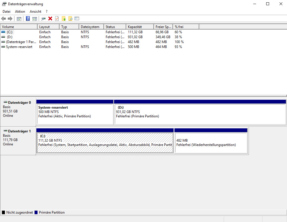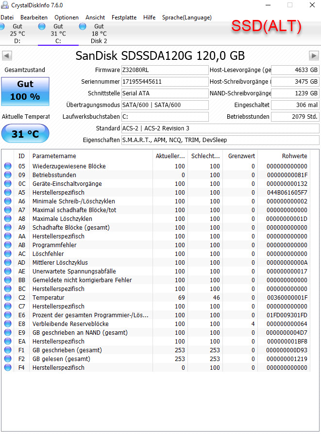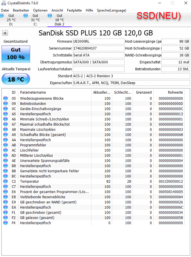 Ich habe mir vor kurzem eine zweite SSD gekauft einfach nur als Speichermedium für meinen PC. Ich habe sie angeschlossen und formatiert und hatte Daten, Spiele raufgezogen und auch gespielt. Heute als ich heimgekommen bin sagte mein PC kein Betriebssystem gefunden(keine ahnung wiso)... habe die SSD(alt) wo das BS oben war auf einem anderen rechner angeschlossen alle Dateien, Spiele und sonstiges gesichert. Weiters habe ich dann Win10 neu auf die SSD(alt) installiert und dabei neu formatiert. Als alle Treiber und Programme oben waren habe ich die HDD und SSD(neu) angeschlossen. Die HDD ist überall ohne probleme erschienen jedoch die SSD(neu) wo schon daten oben waren nicht. Die SSD(neu) erscheint im BIOS, Gerätemanager, AIDA64 aber nicht im Datenträgermanager wo ich sie neu formatieren möchte. Jetzt habe ich in AIDA 64 endlich herausgefunden das 2 Partitionen auf dieser SSD(neu) oben sind und zwar