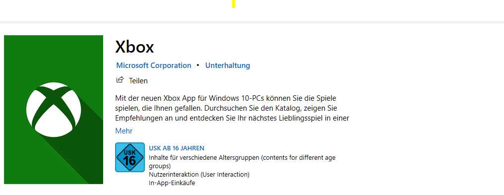 Ich dachte die XBox-App wäre vorinstalliert bei Windows 10, scheint wohl aber nicht so zu