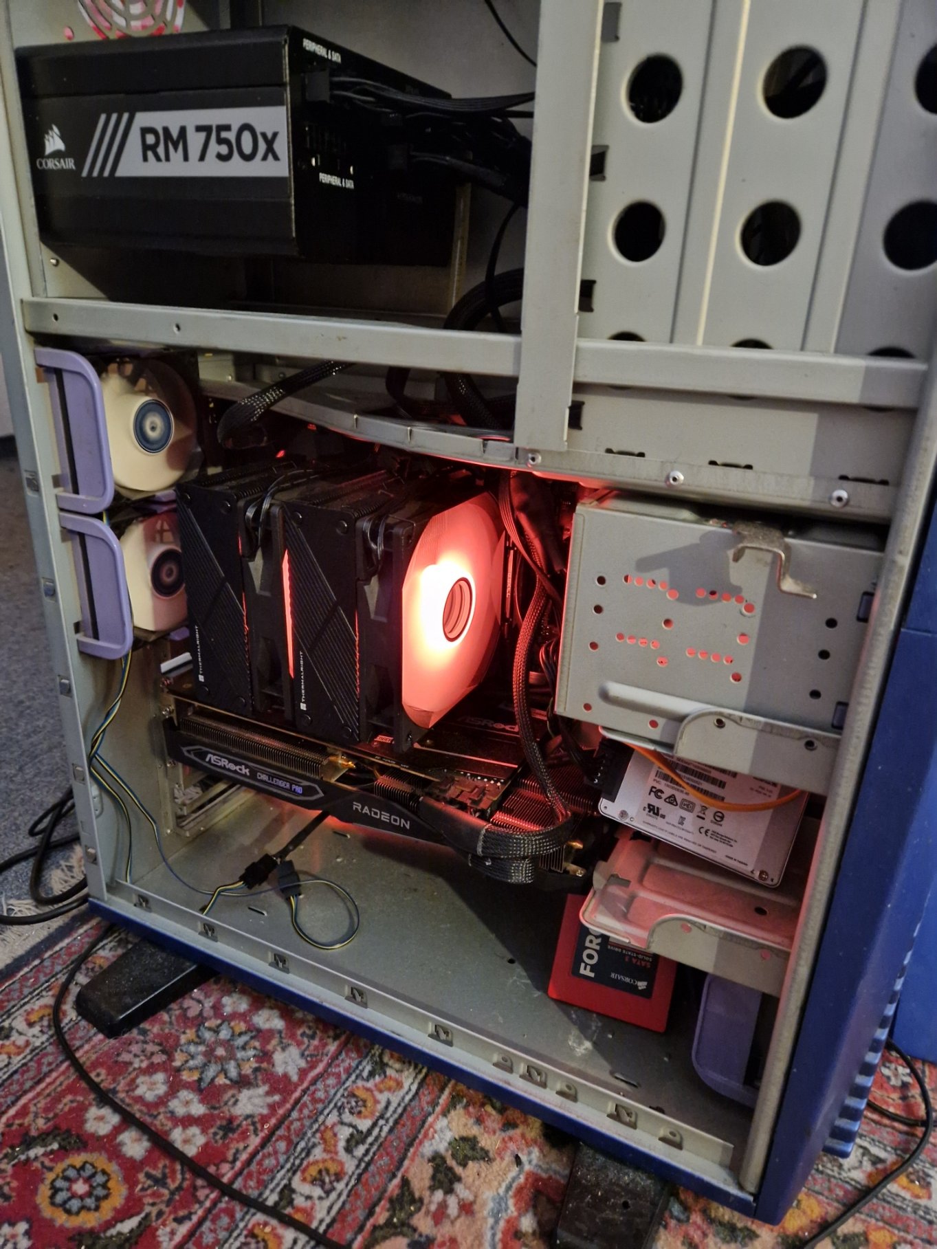 Ich hatte auch überlegt das Gehäuse unten aufzuschneiden und in den Boden zwei 120 mm Lüfter zu verbauen, welche Luft ansaugen.