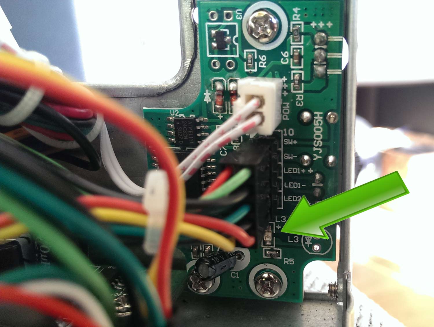 Hier ist eine ein Foto, auf dem die LED markiert ist.