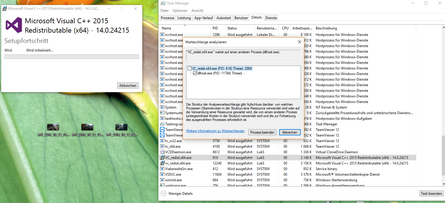 egal welches Programm ich installiere möchte, sobald das Stetup ein MS Visual C++ XXXX Redistributable Package installieren möchte, bleibt die Installation hängen.
