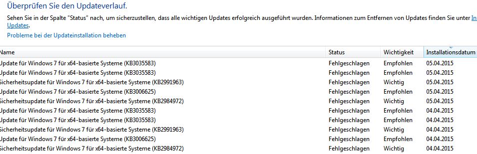 Falls einer AdoKs Lösung ausprobiert und die funktioniert, würde mich das interessieren. Habe nämlich das gleiche Problem mit diesen vier Updates. Persönlich wollte ich auf den Patch Day im April warten und hoffe, dass es sich dann erledigt hat.