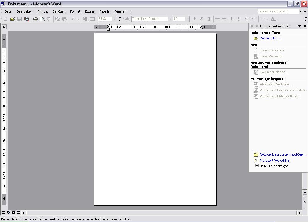 Jetzt gehe ich in das Programm rein und kann mit den vorhandenen Dateien (nicht schreibgeschützt) nichts mehr machen!