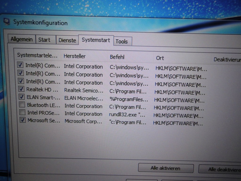Der Reiter "Systemstart" bei "msconfig" hat bei meinem Laptop ursprünglich so ausgesehen: