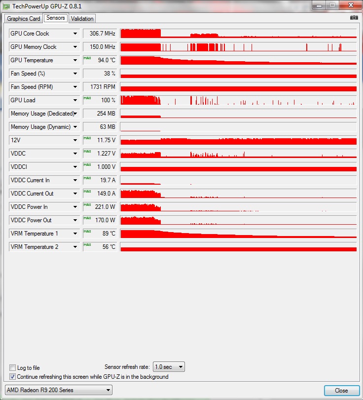 hab dann auf den GPU Z Sensor geschaut und folgendes sehen müssen ( siehe Bild )