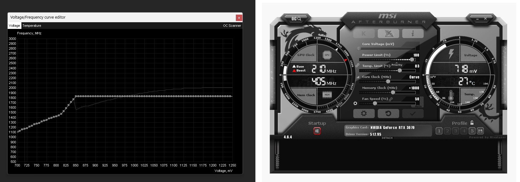 hast du die Spannungskurve eingestellt, oder nur den Wert verändert?Nymeria schrieb:ab auch 850mV bei 1830 Mhz + VRAM 8000Mhz gemacht
