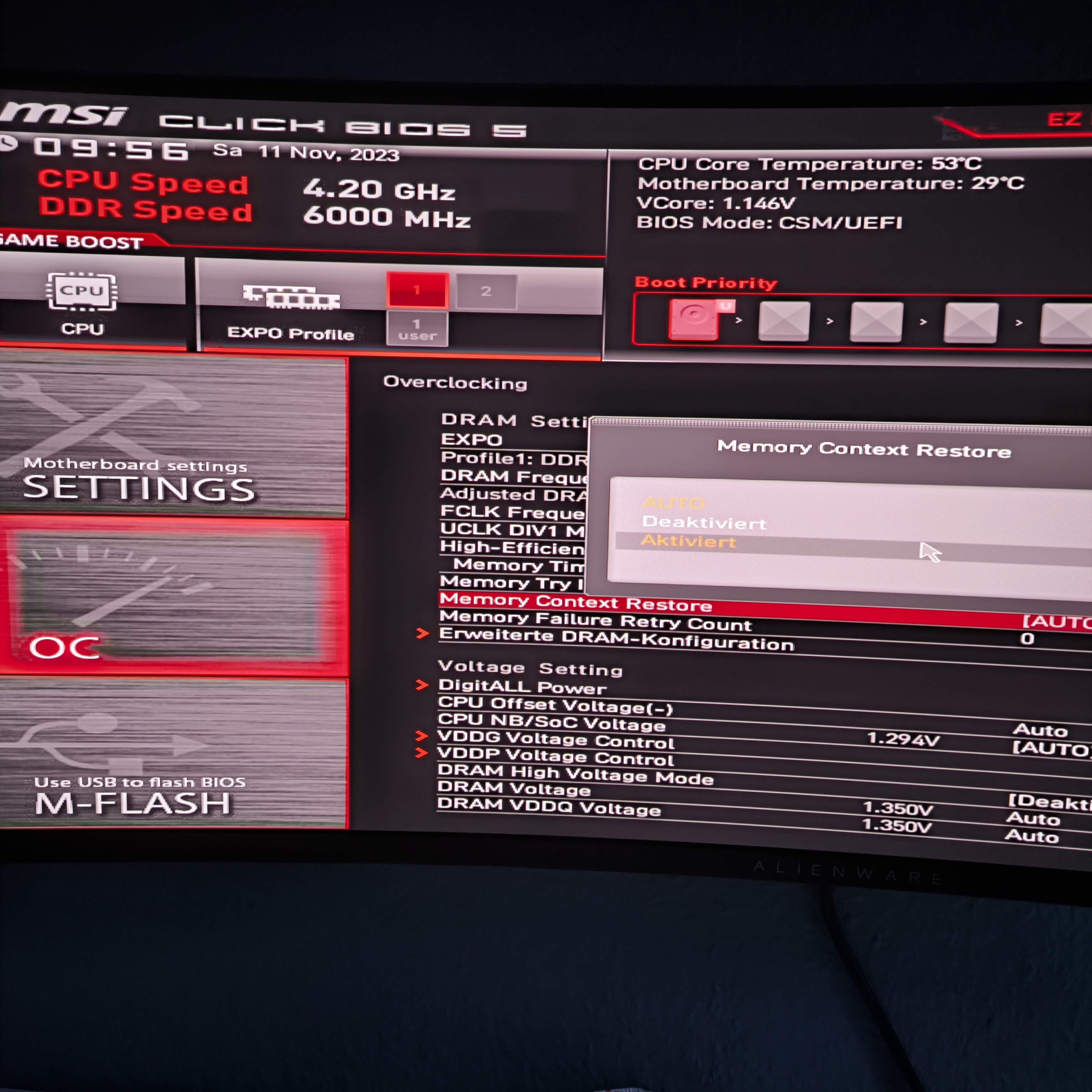 MSI 670E ACE - Freezer im BIOS wenn "Memory Context Restore" aktiv ist.