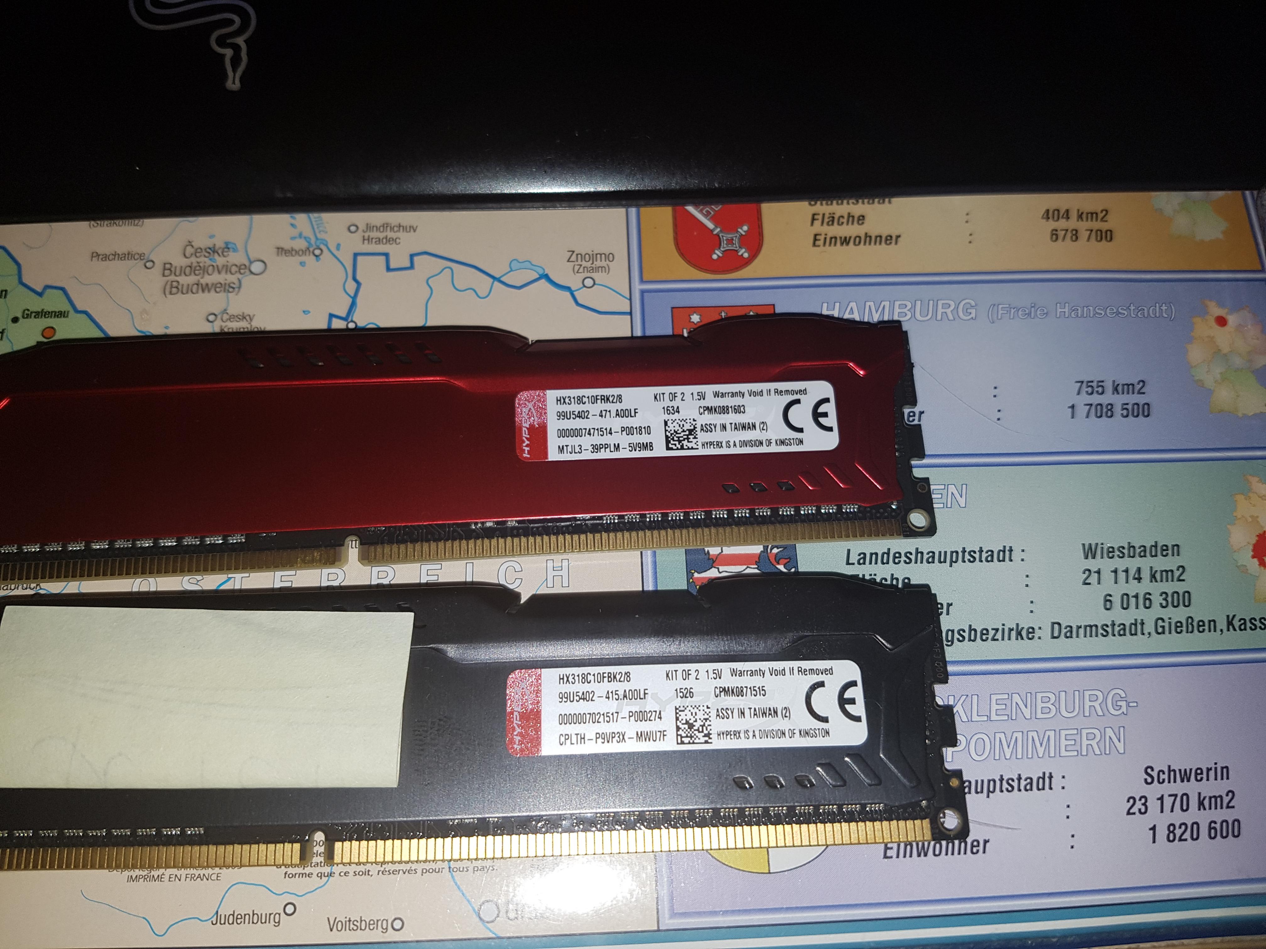 Ich habe dann einen baugleichen Ram neu bestellt nur in rot . Technische Daten der Ram Riegel beide gleich, siehe links