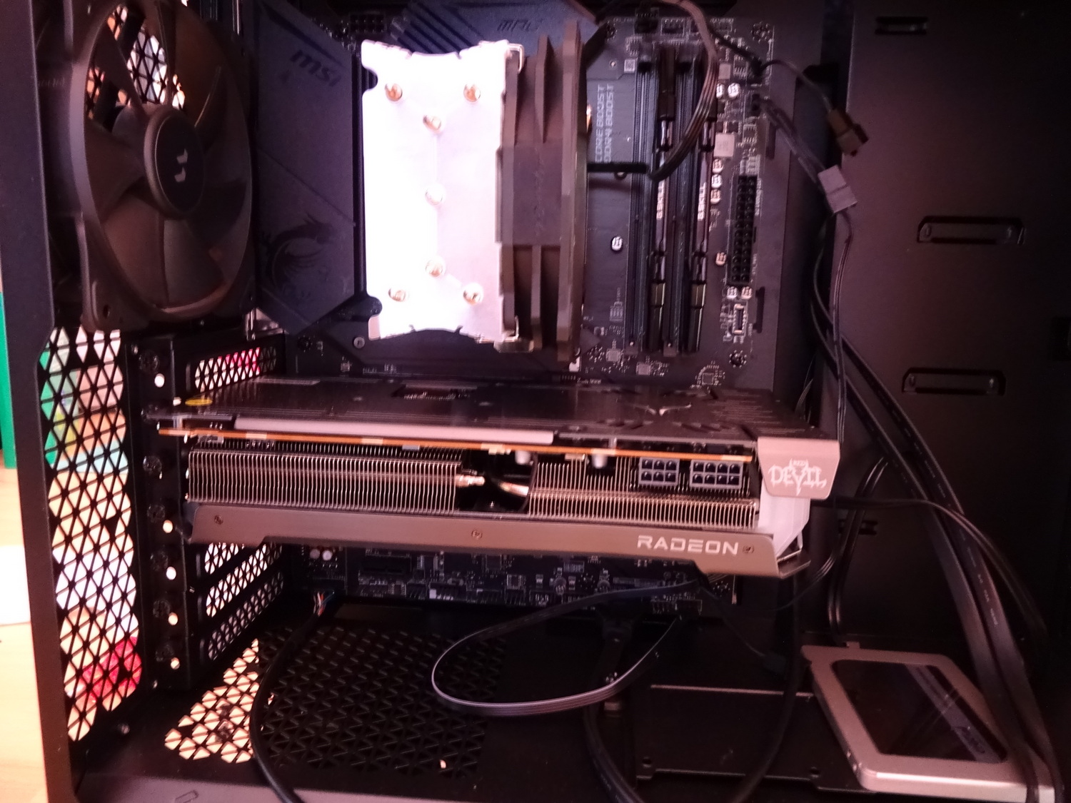 Netzteil ist das MSI A850G, bei der Grafikkarte handelt es sich um eine Powercolor Radeon RX 6650XT, CPU ist ein AMD Ryzen 7 5700X und das Mainboard ein MSI MPG B550 Gaming Plus.