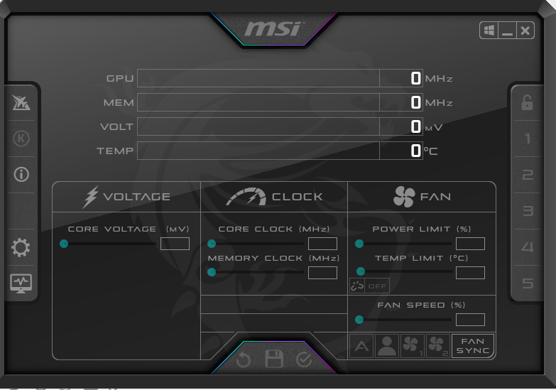 Was heißt du kannst keine Einstellungen im Afterburner mehr machen? Stehen alle Werte auf 0?