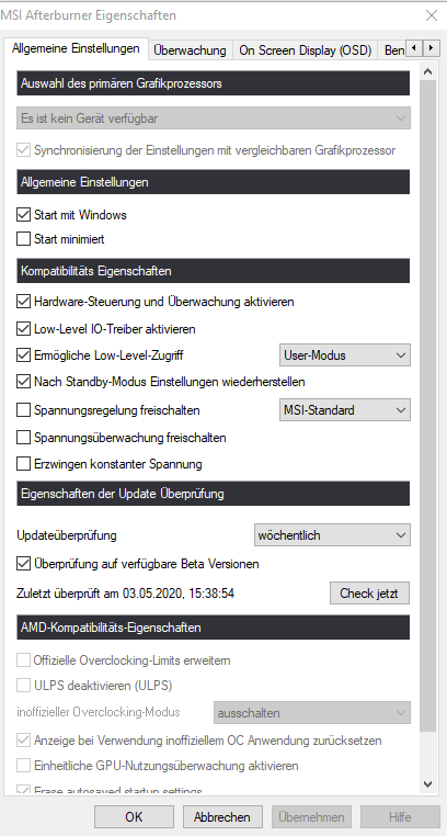 MSI Afterburn Grafikkarte nicht erkannt