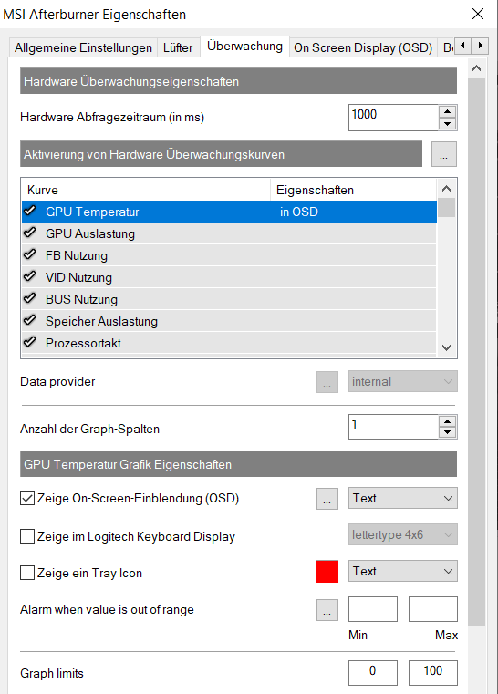2.) Ich schaffe es nicht, mit das OSD auf dem Desktop anzeigen zu lassen, bspw. GPU temperatur (die gibt's immerhin im MSI).