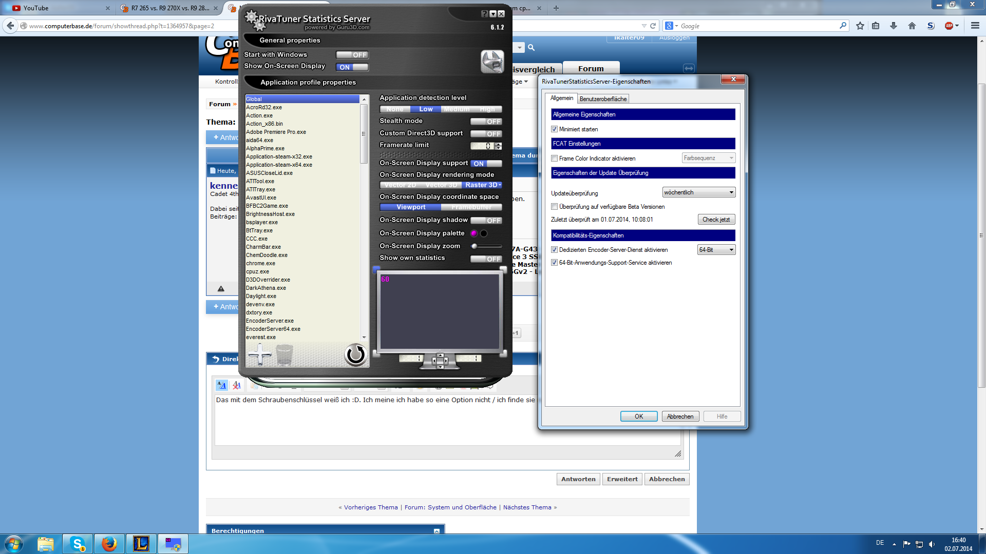 Das müsste doch der "Custom Direct3D Support" Schalter sein im Hauptframe.