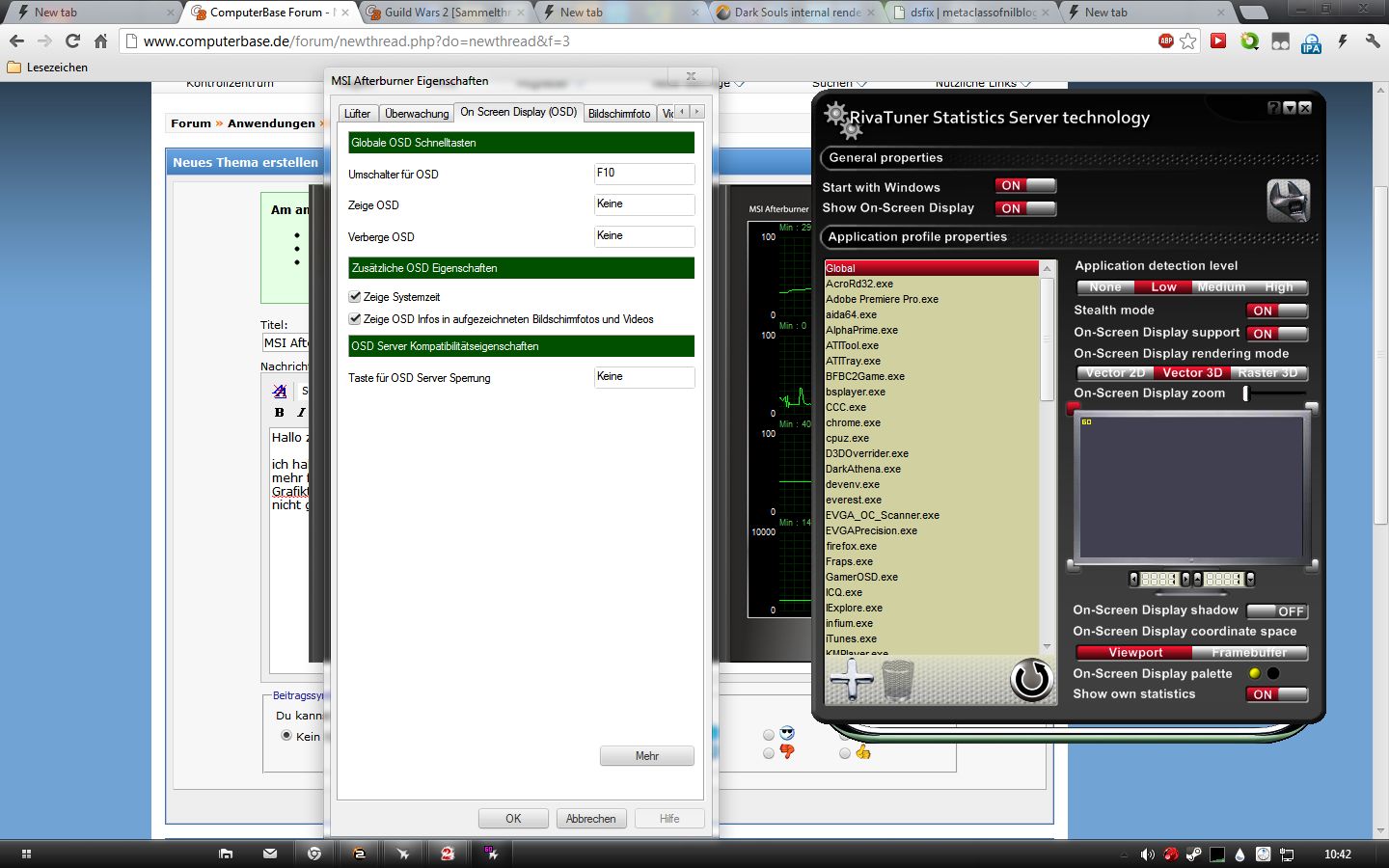 ich habe seit neuestem das Problem, dass das OSD vom Afterburner in so gut wie keinem Spiel mehr funktioniert, es zeigt sich einfach nicht. Ich habe gestern nach einem Tipp den Grafiktreiber komplett neu aufgesetzt und die Reste vorher entfernt, aber das hat mir auch nicht geholfen.