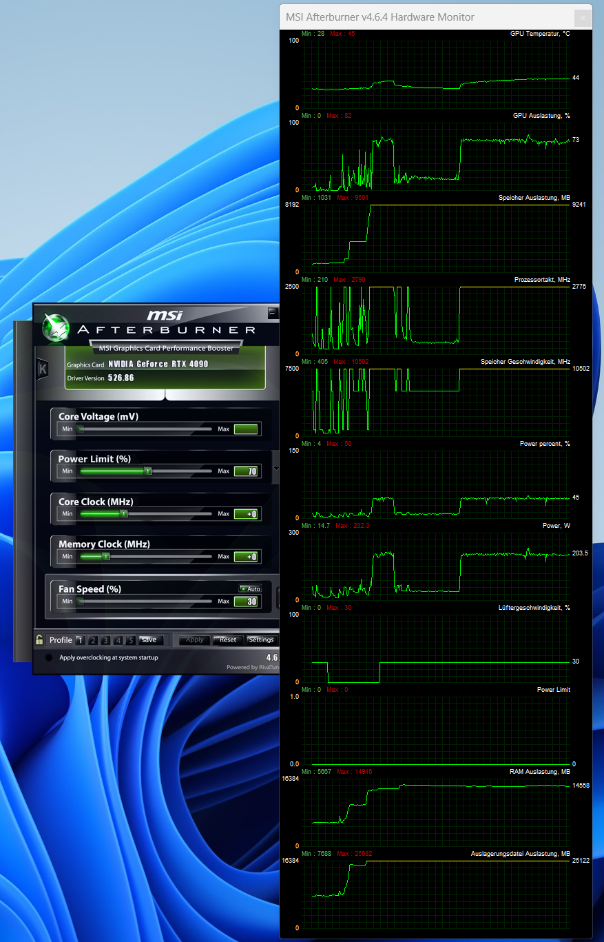 wollte bei meiner 4090 FE gerne 'n Powerlimit von 70% einstellen. Also hab ich Afterburner runtergeladen (4.6.5 Beta 2), Power Limit auf 70% gesetzt, apply, nichts passiert, zieht immer noch Strom aus der Dose ohne Begrenzung. Gibts da aktuell Probleme oder muss ich noch was anderes einstellen?