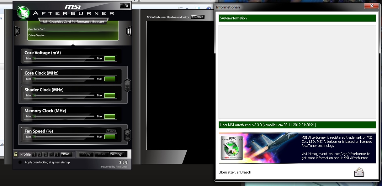 doch auch das downgraden brachte keinen erfolg, schlimmer noch: denn als ich dann den afterburner gestartet habe, war da nichts mehr zu sehen (siehe angehängt bilder). also beim starten direkt nach dem installieren sieht man alles.