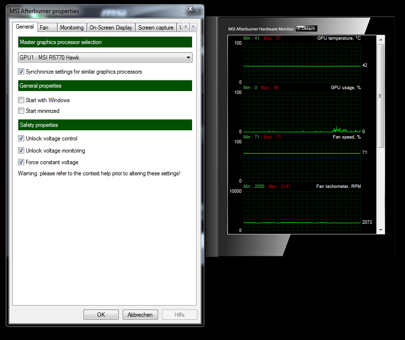 Beim Afterburner habe ich bei Settings auch überall die Häckchen gesetzt.