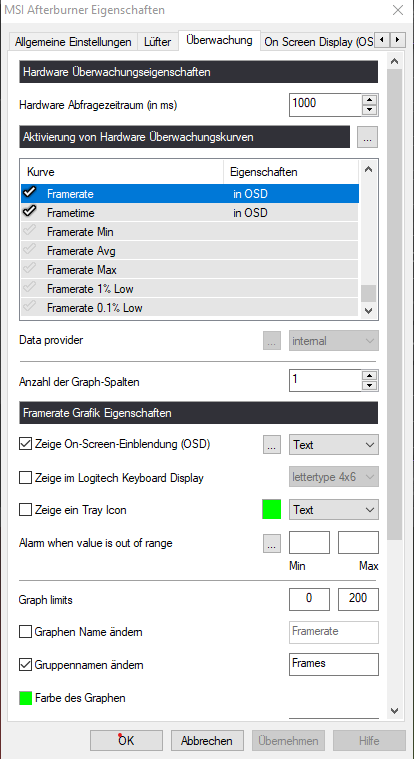 Ich bin schon wieder am verzweifeln. Also ich würde mir gerne In-Game (Steam spiele) ein paar Werte mit dem MSI Afterburner anzeigen lassen. Leider zeigt er mir trotz dicken Haken vorne dran und aktivierter OSD Funktion keine Werte. Sowohl in Brawlhalla, als auch in CSGO werden keine Werte angezeigt. Hat es was mit Steam zu tun? In z.B. Rocket League gehts.