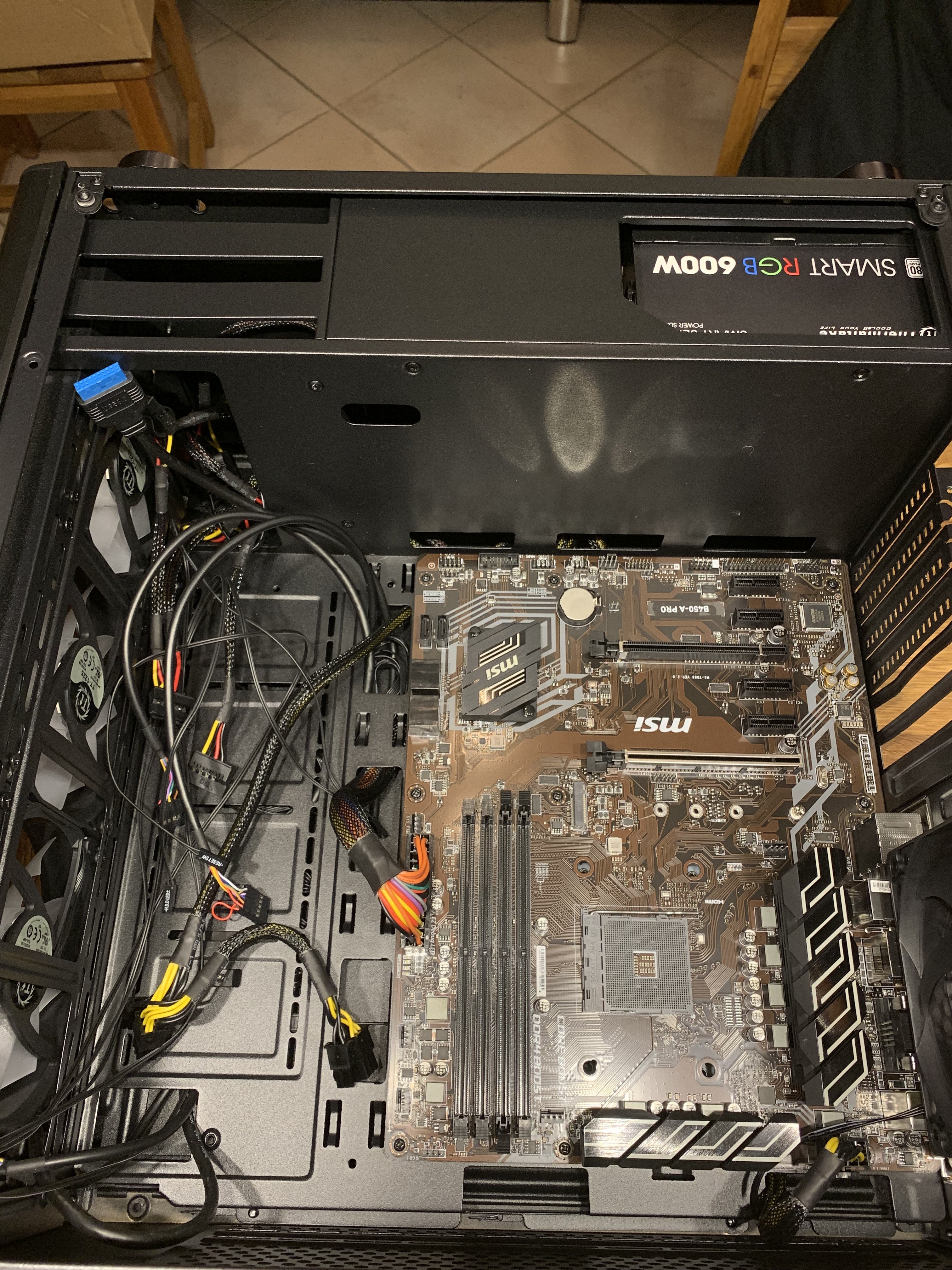 Alles neu - halt nur das Board getauscht für ein b450 a pro aber mein Kollege und ich bekommen es nicht das dieser pc ein Bild bekommt, kommt immer kein Signal & bei bios Updatet leicht die Lampe nur weis -.-