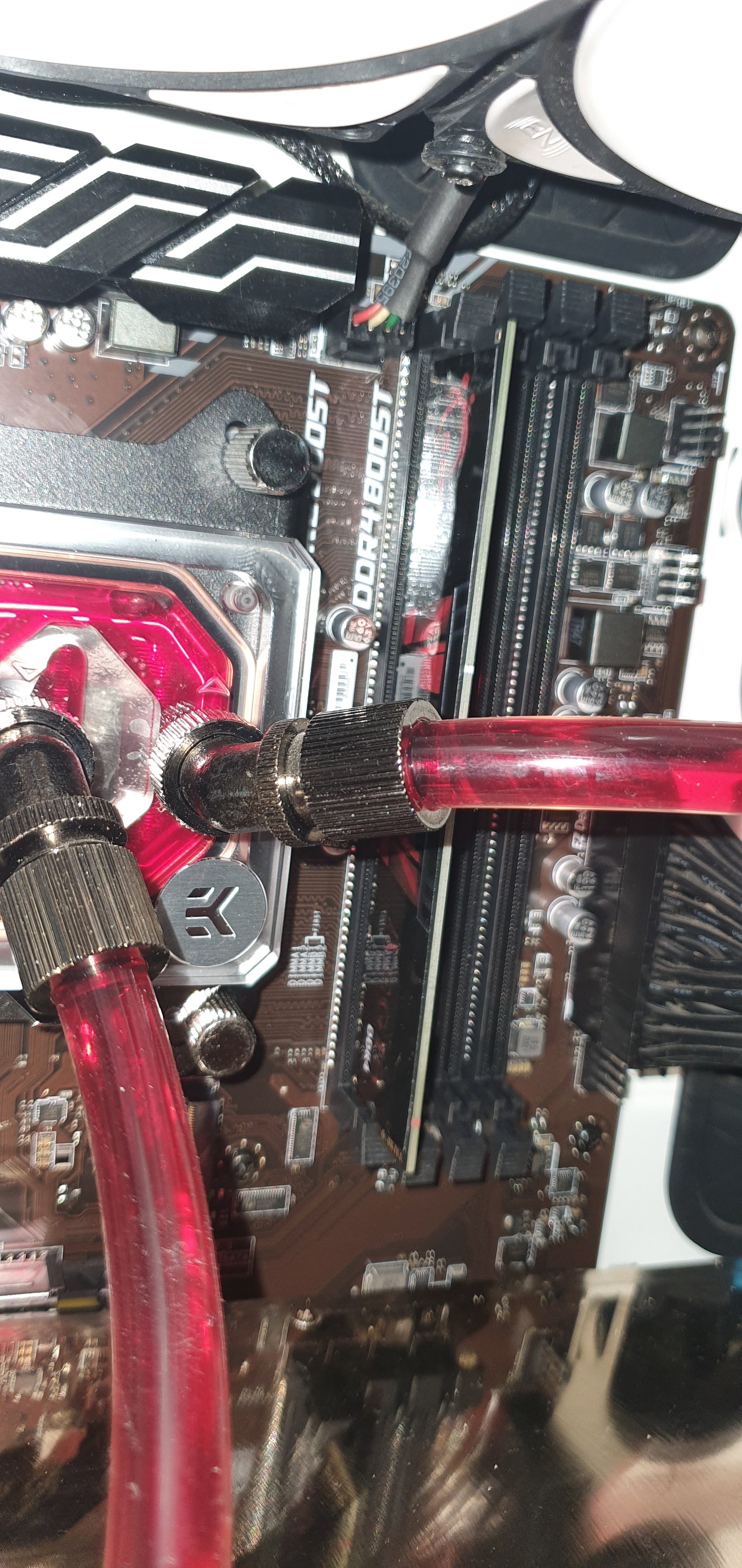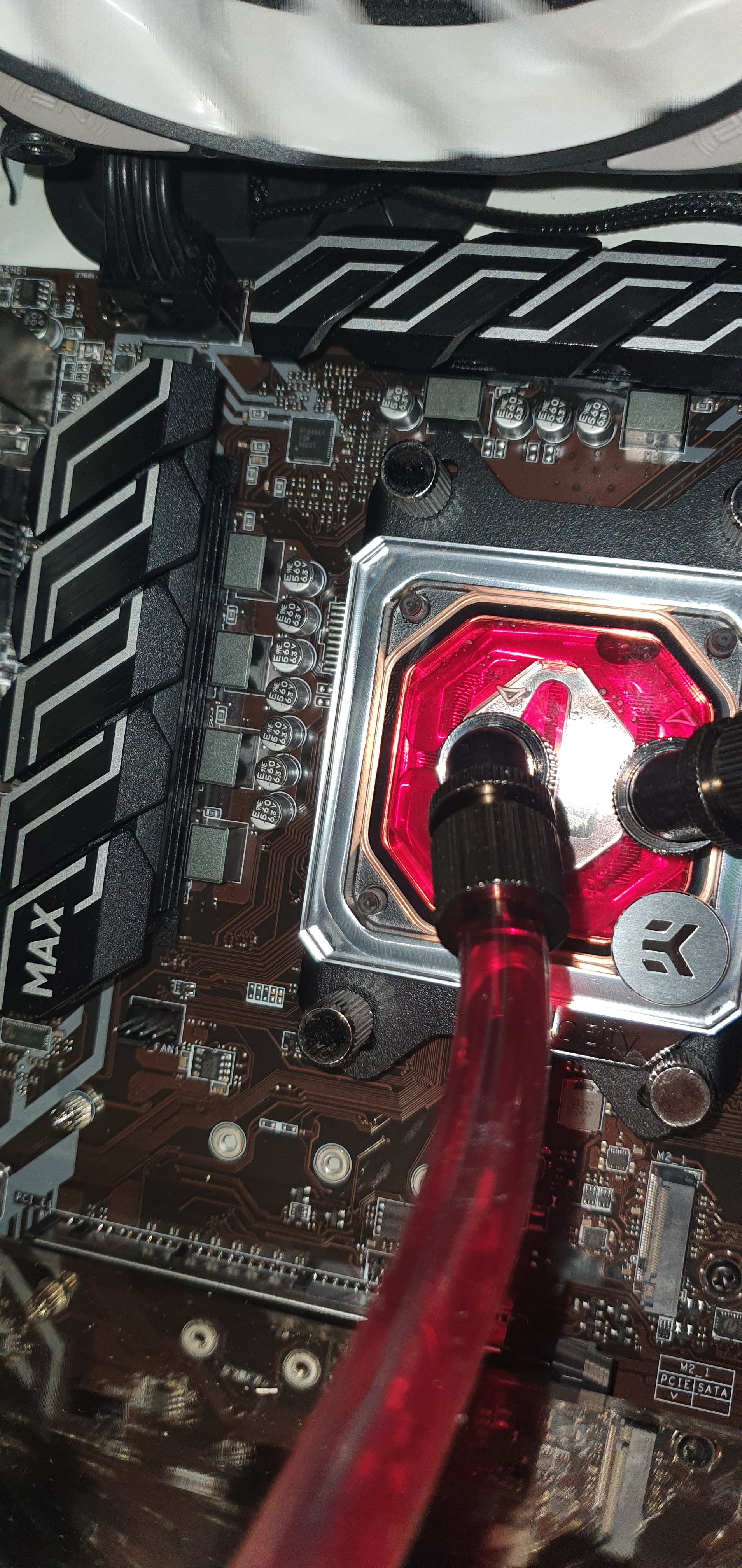 Hab eine Wasserkühlung drin. Neuer ek velocity CPU Kühler drin.