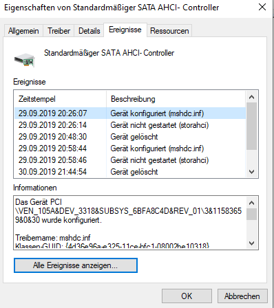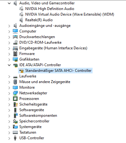 Unter Windows 10 bekomme ich bei einem von 4 SATA-Geräten ein Ausrufezeichen.