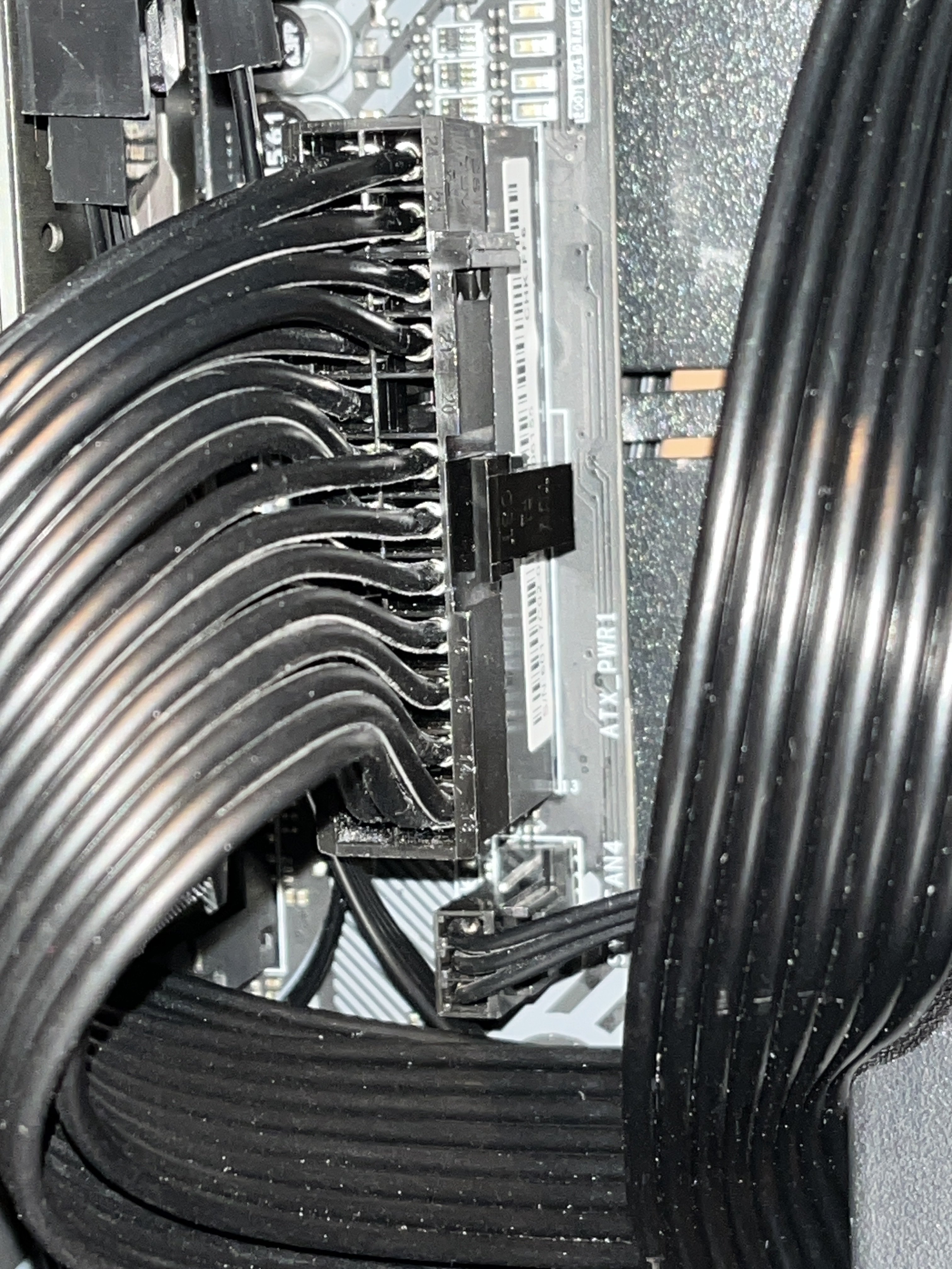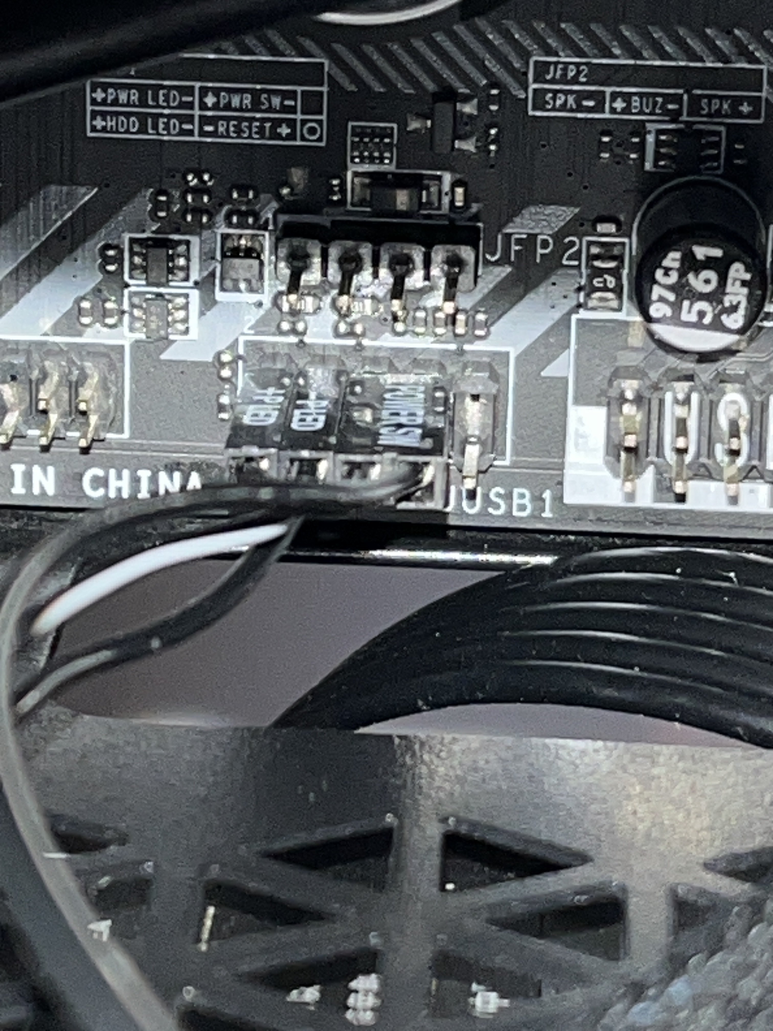Habe den oben genannten Rechner eben zusammen gebaut aber dieser startet nicht. Ich glaube es liegt an den Kabeln zum pc starten usw. Ich habe im Handbuch geschaut und einfach + zu + und - zu - angesteckt. Habe aber auch nur 2x1 und 1x2 Stecker. Ich versuche ein Bild einzufügen….