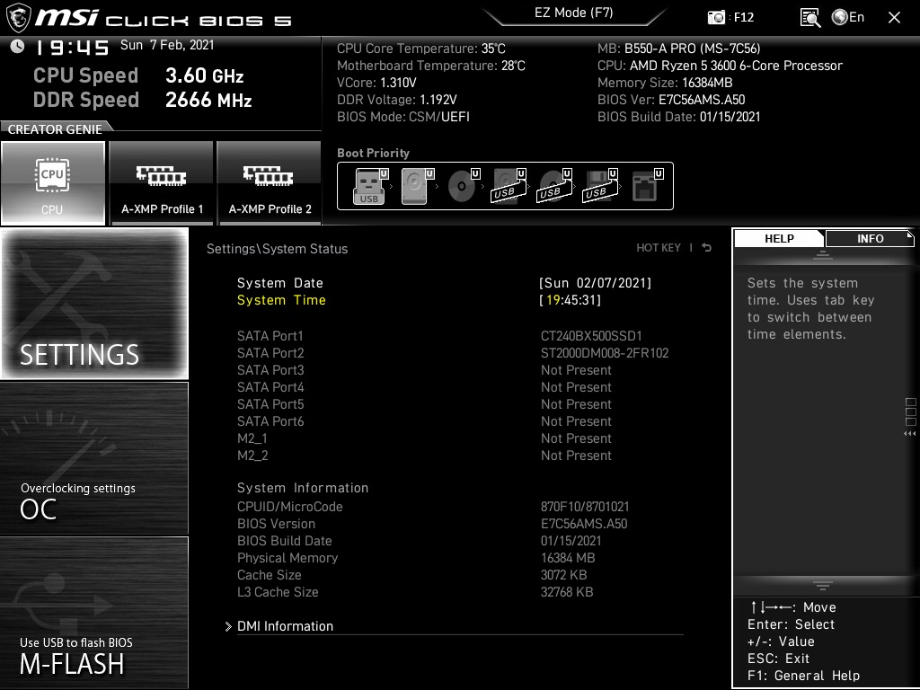 - Mainboard: MSI B550-A Pro