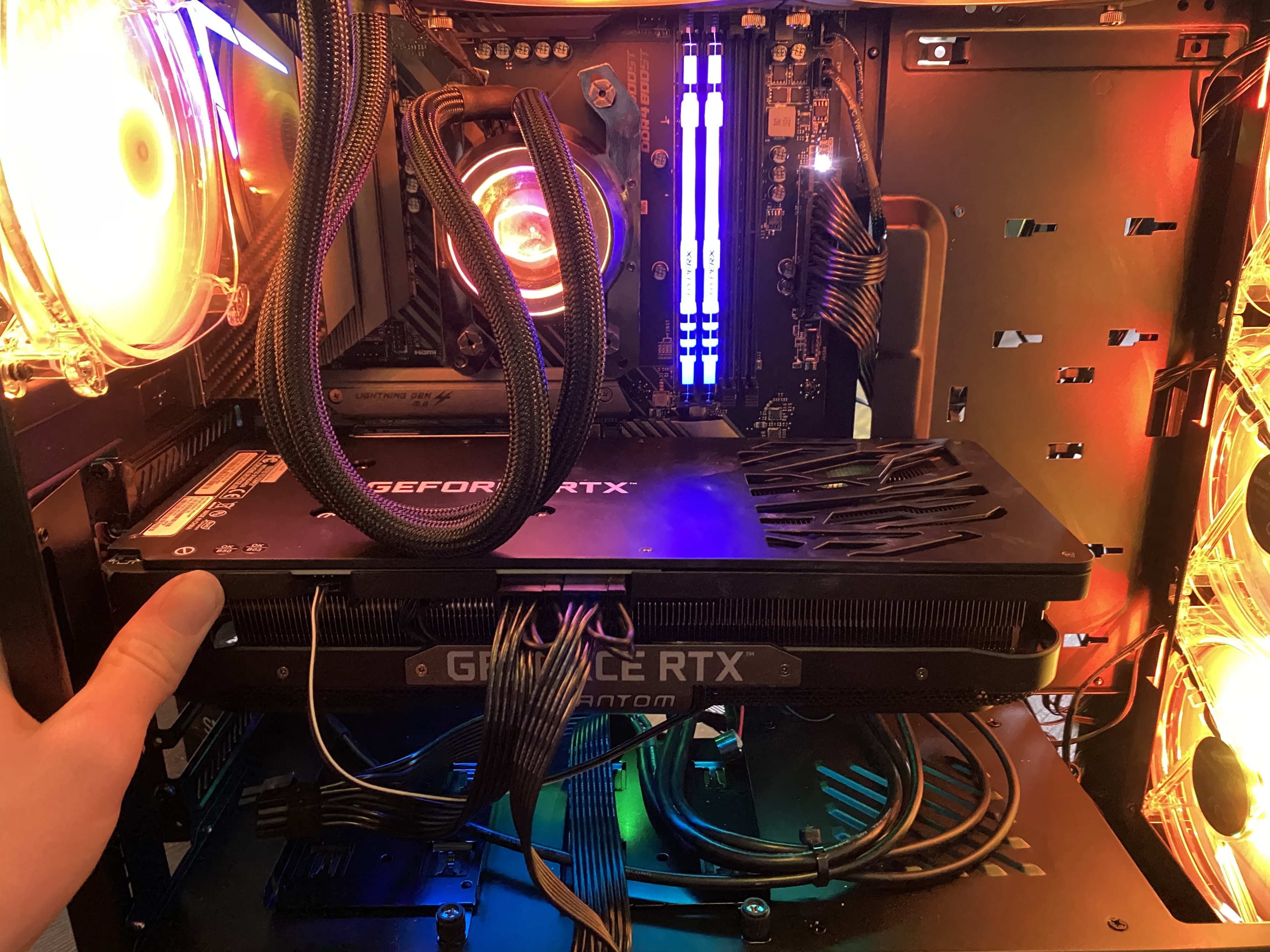 Nun ist meine frage, nachdem ich alles zusammengebaut und richtig angeschlossen habe (hoffentlich), hat der PC zwar Strom, alle Lüfter drehen sich alle RGB Leuchten leuchten aber es gibt kein Bild und bei den EZDEBUG LEDS leuchtet erstmal eine weile die CPU LED, doch die geht wieder aus und springt rüber zu der VGA LED, gibt dann 1x langen und 2x kurze Piepstöne und springt dann zu der BOOT LED. Nun hab ich schon herausgefunden, dass das Piepsen auf die Grafikkarte hinweist, jedoch kann ich einen defekt ausschließen da sie beim Einbau in meinen alten PC erkannt wird und funktioniert. Also hab ich mal die Slots gewechselt, selbe Geschichte nur das die BOOT LED nicht aufleuchtet (kann auch sein das sie wegen des Platzmangels aufgrund der Kabel in den unteren Slot nicht rein passt). Auch der Einbau meiner alten Grafikkarte weist den selben auf. Ich hab aber keinen Grafik on Board Chip also kann ich das auch nicht im BIOS prüfen geschweige denn das BIOS irgendwie updaten kann mir da jemand weiterhelfen?