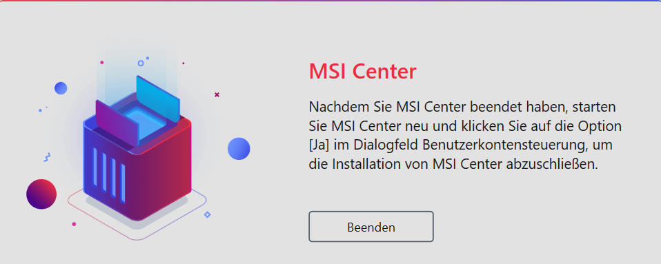 Ich kann die Beleuchtung von meinem PC nicht mehr ändern, weil sich MSI-Center nicht mehr startet, es steht dann immer dieser Text ( siehe Datei ). Ich habe das Problem schon seit Monaten, ich habe es irgendwann aufgegeben, als ich heute aber dann mal wieder gucken wollte ob es vielleicht geht, tja immer noch nicht und jetzt reicht es mir. Ich habe auch schon eine saubere Deinstallation vom Programm gemacht und es dann wieder neu installiert, bringt alles nichts. Offen für jeden Lösungsvorschlag, Danke im Voraus