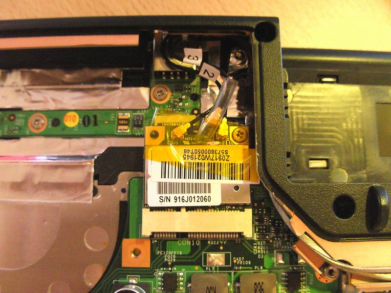 Bild12: leerer MINI-PCI-Express-Slot für den WLAN-Chip mit 3 Antennenzugängen