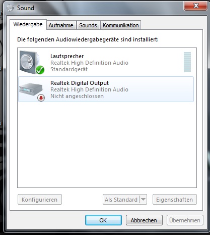 So sollte es aussehn ( Systemsteuerung --- Hardware und Sound --- Audiogeräte verwalten)