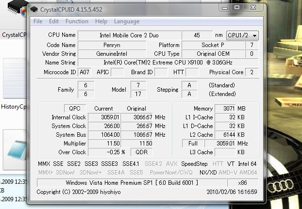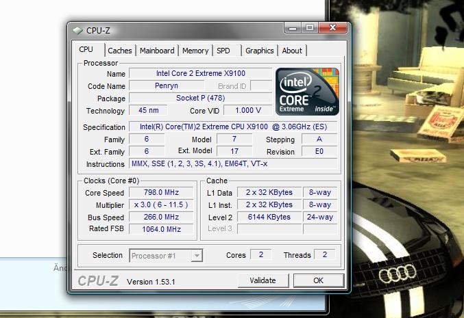 Bei CoreTemp wird der X9100 zwar als X9000 erkannt aber alle weiteren Angaben wie Taktfrequenz und Multi sowie Spannung werden richtig erkannt. Vllt. sollte ich einfach eine aktueller Version des Tools installen damit der CPU endlich den richtigen Namen bekommt.