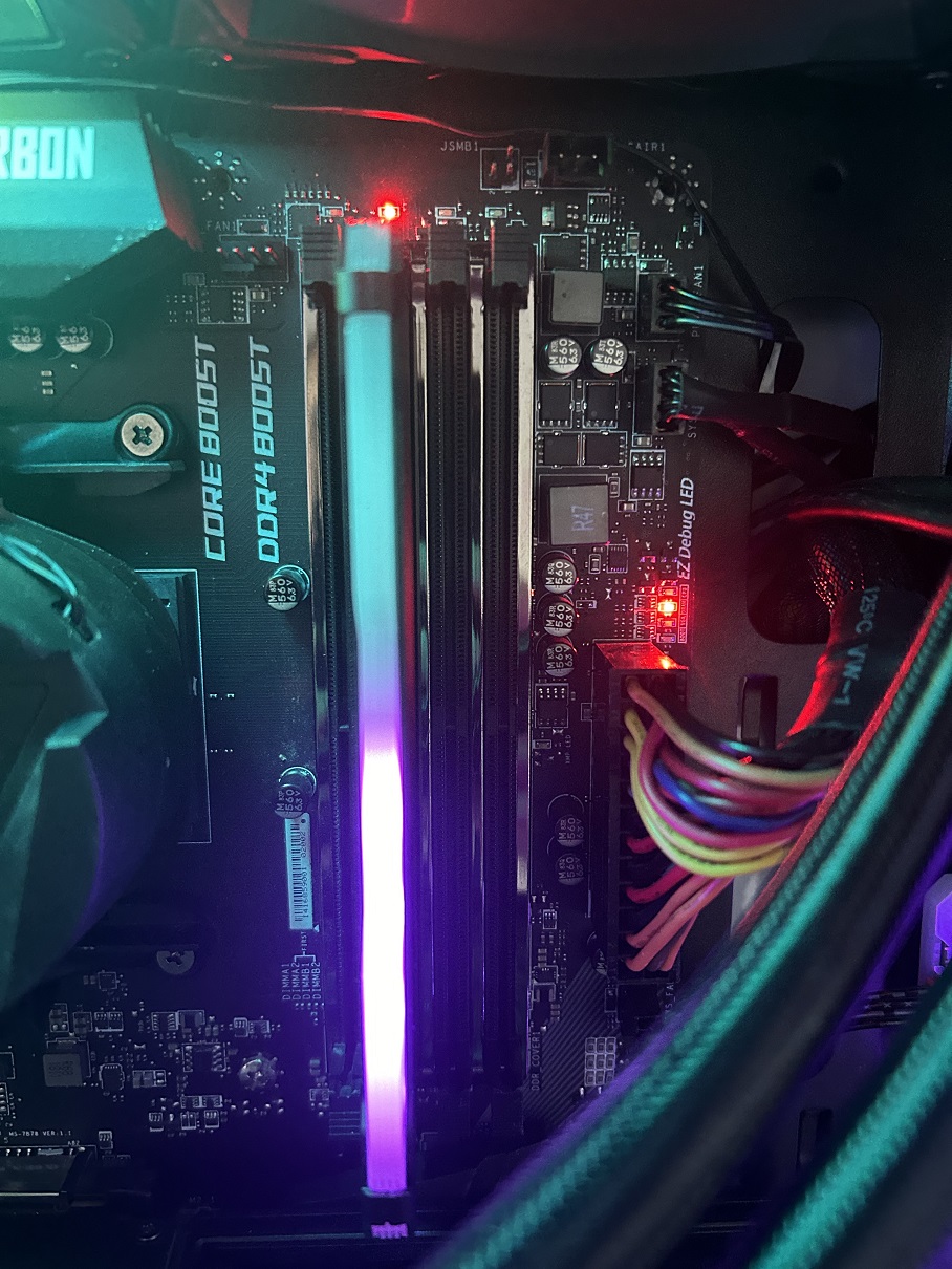Nachdem ich festgestellt habe dass mein RAM nur mit einer Freq. von 1066 gelaufen ist, obwohl XMP aktiviert war, habe ich ein BIOS Live Update über das MSI Dragon Center durchgeführt. Nach dem Update habe ich den PC ganz normal starten können jedoch hat sich auch nach diesem die Freq. nicht geändert und die RAM Speicher liefen weiterhin mit 1066. Also PC Heruntergefahren und ins BIOS um die Freq. manuell einzustellen. Nachdem ich die Freq. auf 3600 eingestellt habe und die Einstellung gespeichert wurde, wollte ich den PC ganz normal starten. ab diesem Moment blieb mein Bildschirm schwarz und die DRAM EZ Debug LED leuchtet.
