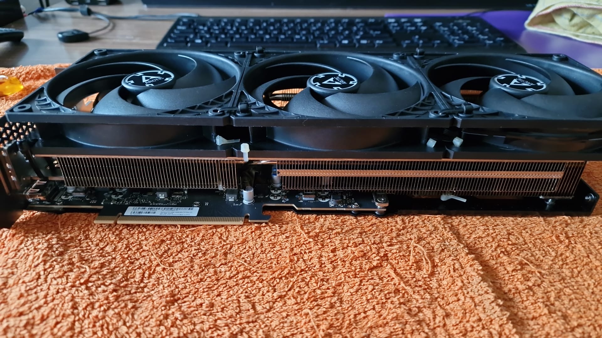 Wenn ich das für gut befinde, würde ich das auch auf einer anderen Grafikkarte mache, das ist eine ASUS. Ich habe allerdings gemerkt, dass ich da aber auf jeden Fall noch einen Adapter brauche, weil die Grafikkarte keinen 4-Pin-Stecker, sondern einen breiteren, flacheren hat und ich die Lüfter nicht am Mainboard anschließen möchte (weil sie sich sonst nach der CPU richten würden). Leider weiß ich nicht, welcher Adapter wirklich passend ist, da muss ich also auch erst einmal auf Suche gehen, bevor ich irgendwas bestelle, was dann doch nicht passt.