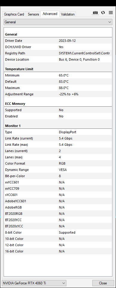 Die MSI GeForce RTX 4060 Ti Ventus 2X Black 16G war auf Ebay im Angebot, dazu hatte ich dort noch Punkte angesammelt, also mal geordert. Heute angekommen, ausgepackt, DDU im abgesicherten Modus gestartet und ausgeführt, die alte 2060 12GB ausgebaut, die neu eingebaut, den neusten Nvidia Treiber installiert, ein Spiel testweise gestartet, 25fps und Stotterer. Die GPU scheint nicht hochzutakten und GPU-Z und MSI Afterburner können einige Dinge nicht auslesen. Powerlimit und Temperaturlimit lassen sich auch nicht setzen, die PCI Lanes takten nur auf 1.1 statt 4.