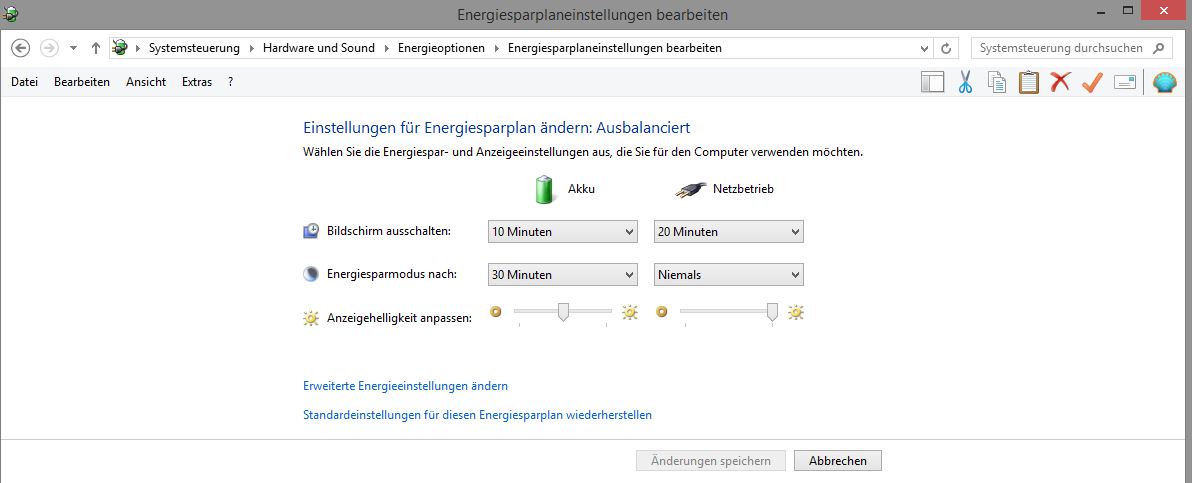 Anbei noch einige Screens von den Energie - und Bildschirm Einstellungen.