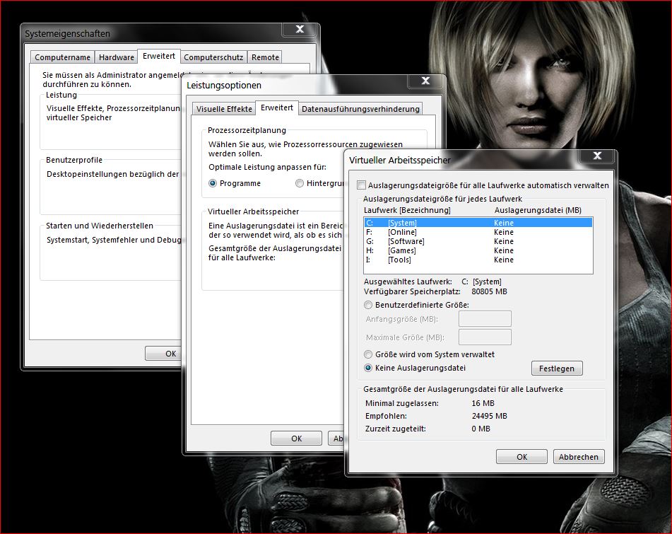 Mal ne ganz dumme frage, hast du deine auslagerungsdatei beschnitten? Setzt die auf 16gb oder auf vom System verwaltet.