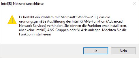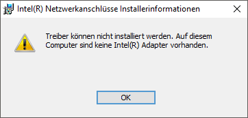 "Treiber können nicht installiert werden. auf diesem Computer sind keien Intel(R) Adapter vorhanden."