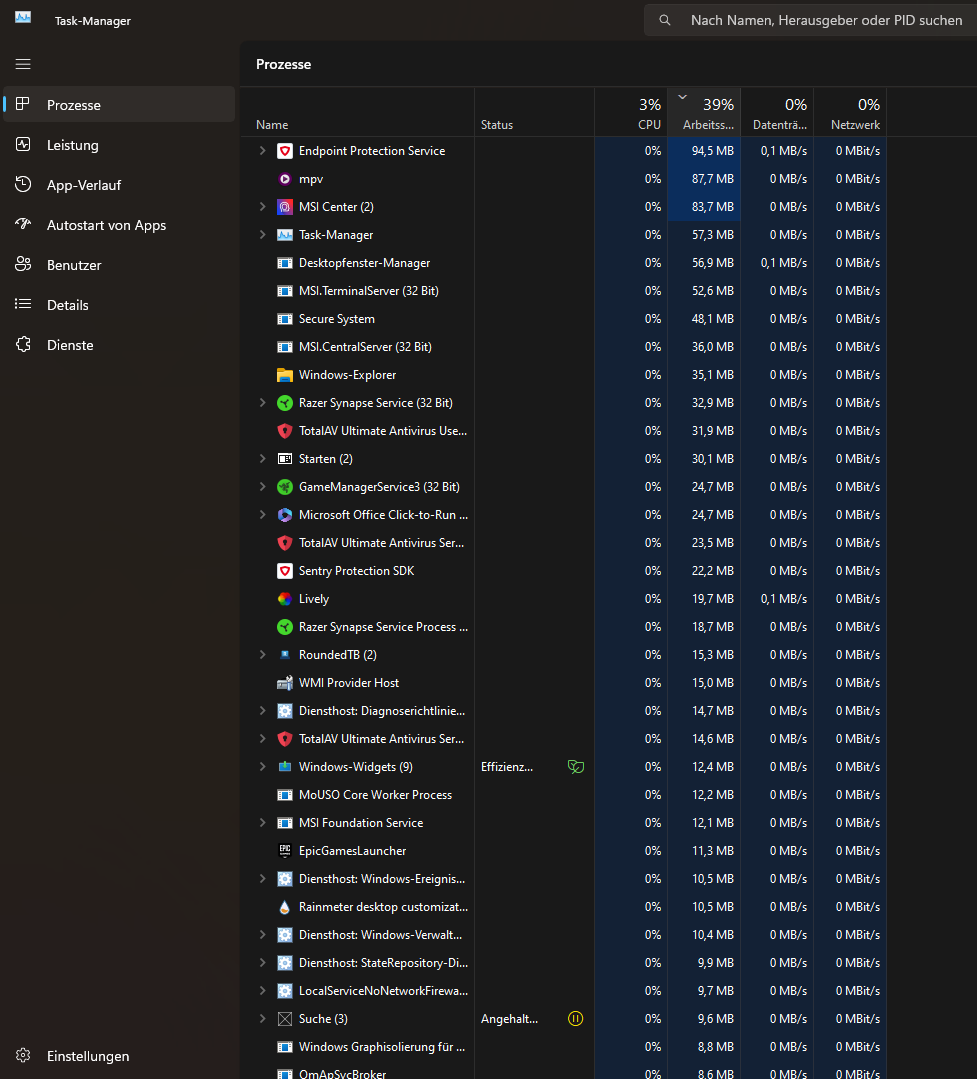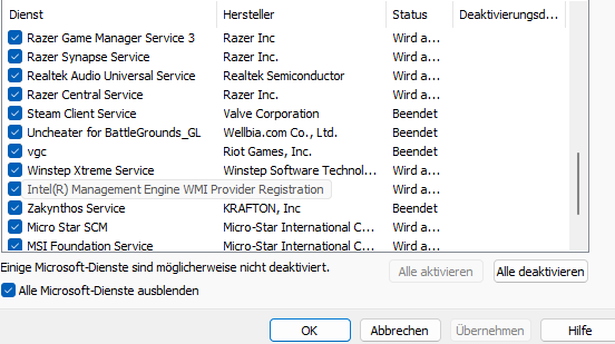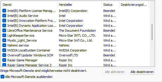 Den Ganzen Razer Kram, Mystic Light & Co gleich mit runter. Wenigstens testweise. Die sich auh schon ein paar mal mit Performance Problemen aufgefallen