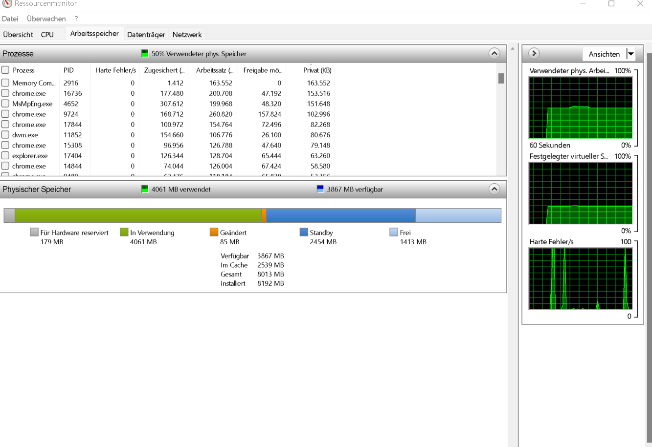 Das war vor ein paar Monaten noch nicht so und jetzt habe ich mal geschaut was so alles anliegt und ich habe gesehen im Taskmanager das mir der RAM absolut um die Ohren fliegt und ich selbst wenn ich nichts geöffnet habe mit was ich beschäftigt bin bereits mein Arbeitsspeicher nur mit dem Task manager ca. 30% meines Speichers frist und das macht mir sorgen ^^' wie gesagt ich habe mich leider nie mit dem Laptop richtig auseinander gesetzt oder generell in das Thema ich hoffe mir kann geholfen werden vorallem für das alter. (als Info der Laptop soll 8GB RAM haben) ich lade ein paar Bilder hoch wo ich das nochmal genauer zeigen kann was ich meine vielleicht fehlt mir einfach etwas.