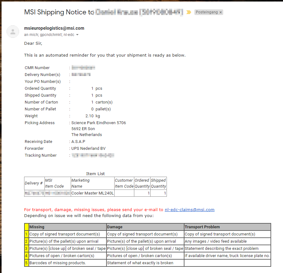 Und hast du auch die E-Mail von MSI bekommen, das sie mit UPS kommt?