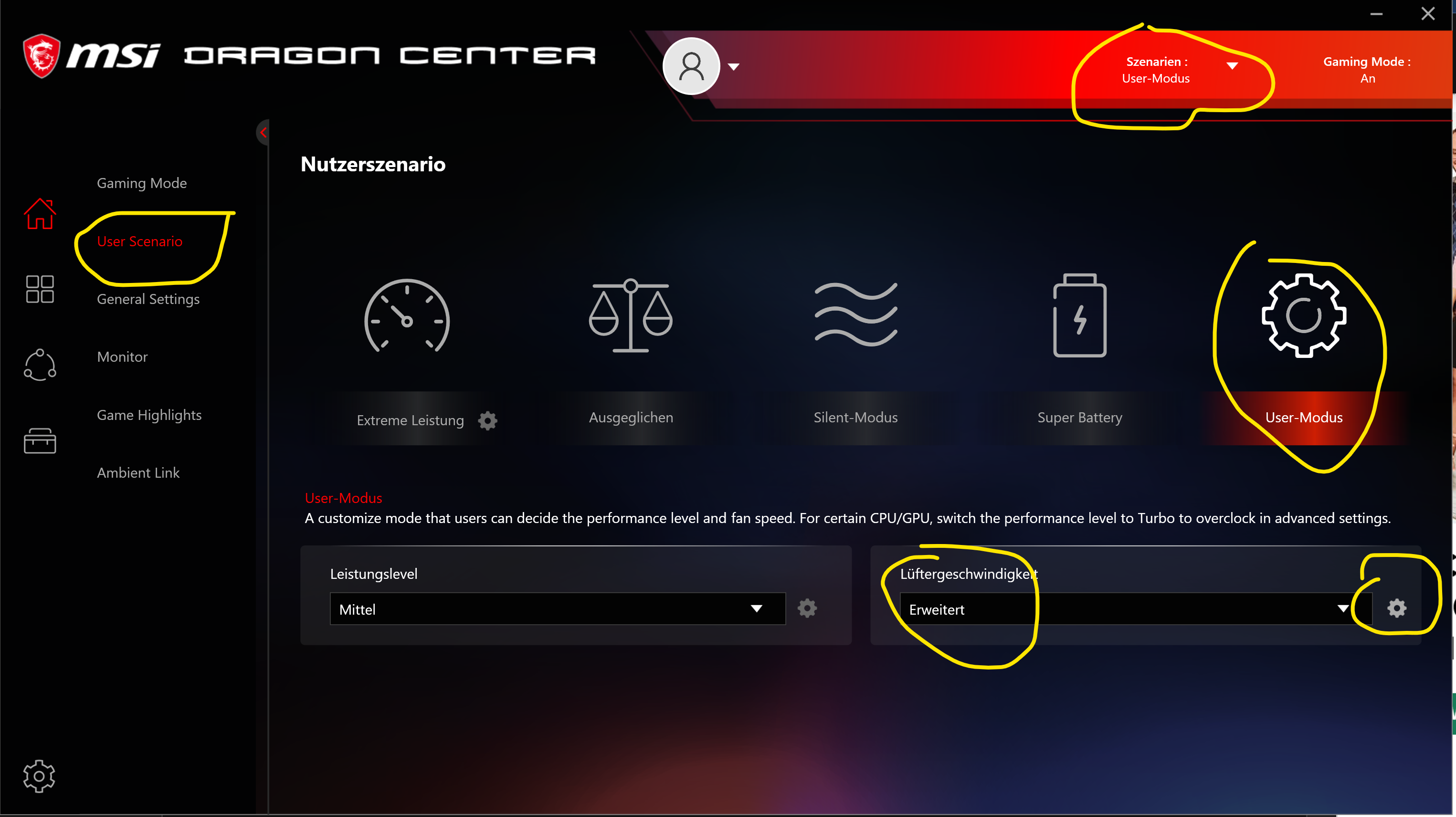 dann ab 53° geht die Drehzahl bis 59°C hoch auf 40%... (>60°C hab ich nur wenn ich Spiele oder Videos bearbeite), deshalb alles unter 60°C mit minimaler Drehzahl und schwerpunkt auf leises system.
