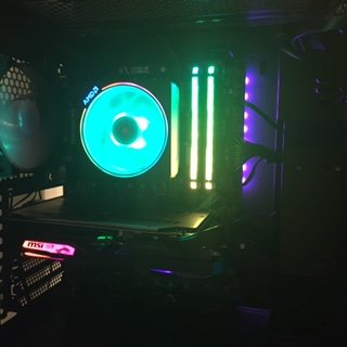 Erstes Mal eingeschaltet und alles hat funktioniert...........die Front leuchtet nicht zu aufdringlich, der AMD Wraith RGB sieht cool aus und die RAM sowie die Hintergrundbeleuchtung des Boards ergeben ein buntes Bild.