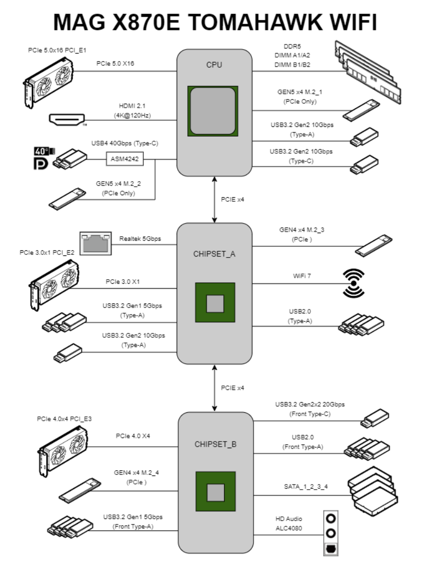 ich habe ein neues Mainboard "MSI MAG X870E Tomahawk WiFi". Zuerst hatte ich nur eine NVME im M1 Steckplatz drin. Grafikscore war nicht auffällig. Nun habe ich eine 2. NVME in M4 rein und auch die anderen durchgetestet. Mein Grafikscore bei bspw. in Solar Bay ist nun bei 157000 anstatt 210000. Irgendwas bremst hier die Karte aus. Habe ich Lane Sharing? Samsung Magican zeigt für die NMVE in Slot 1 1x4 und 4x4 in Slot 4 an. TechPowerUP für die GPU zeigt PCIe x16 5.0 an.