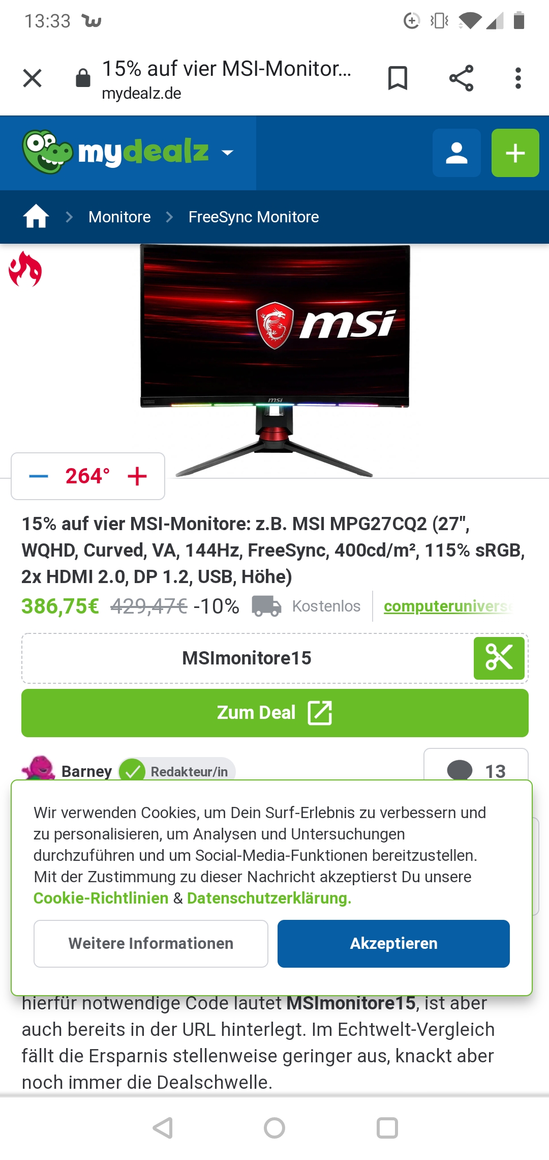 Und was haltet ihr davon...https://www.mydealz.de/deals/15-auf-vier-msi-monitore-zb-msi-mpg27cq2-27-wqhd-curved-va-144hz-freesync-400cdm2-115-srgb-2x-hdmi-20-dp-12-usb-hohe-1672060