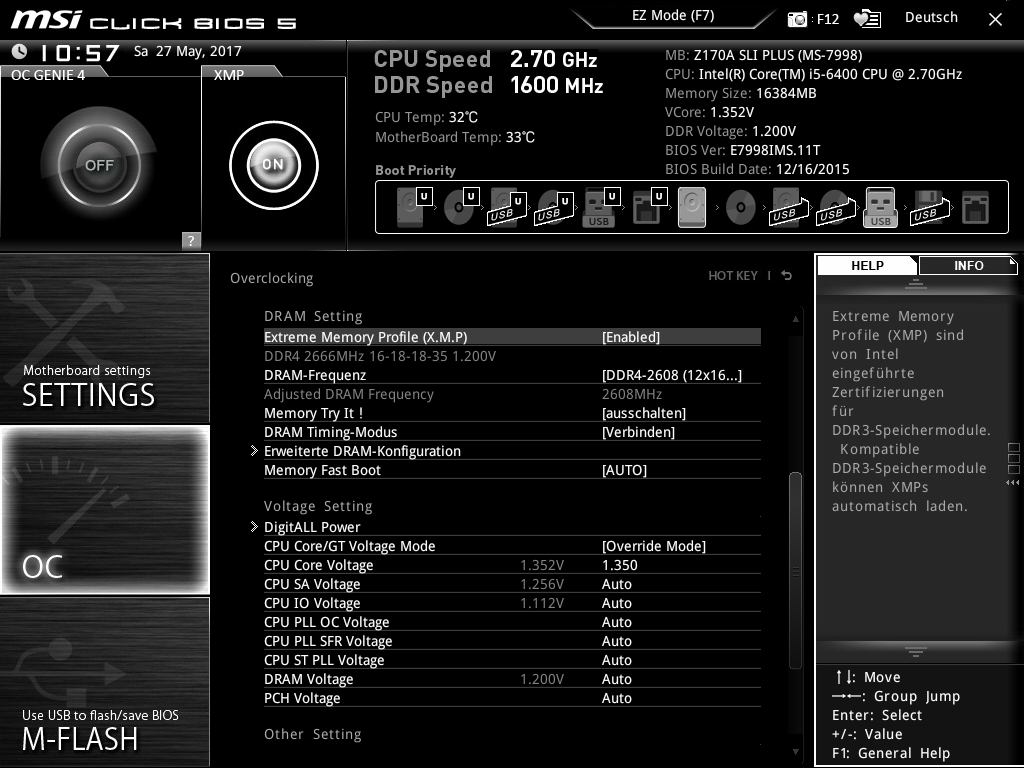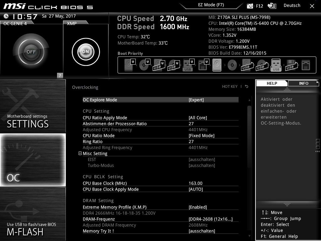 Dadurch hat sich auch die Übertaktung des Prozessors und der RAM zurückgesetzt. Im "OC Profil" sind von Caseking noch die OC Einstellungen gespeichert.