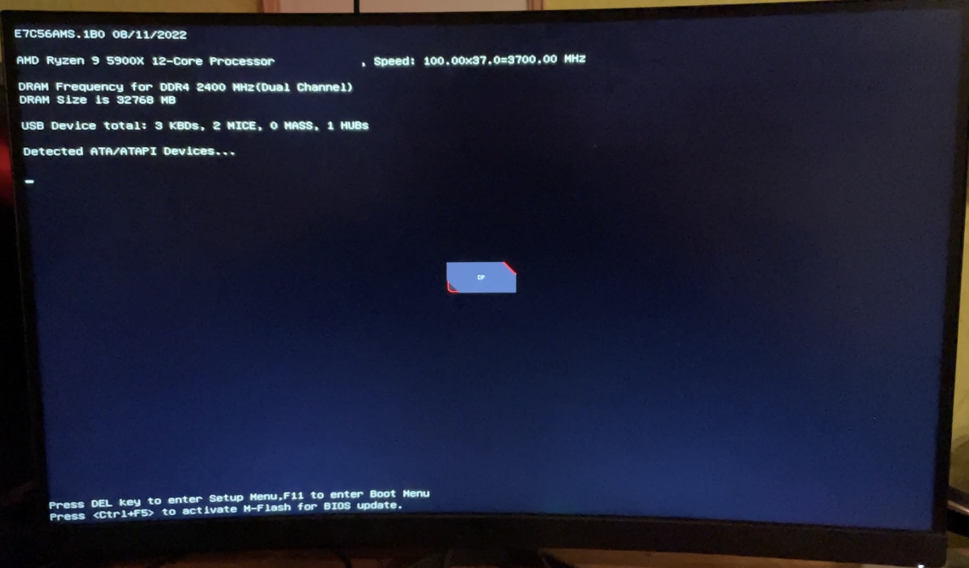 Musste dann weg und hatte den PC heruntergefahren. Beim erneuten Hochfahren ist der PC im Bootscreen hängen geblieben.