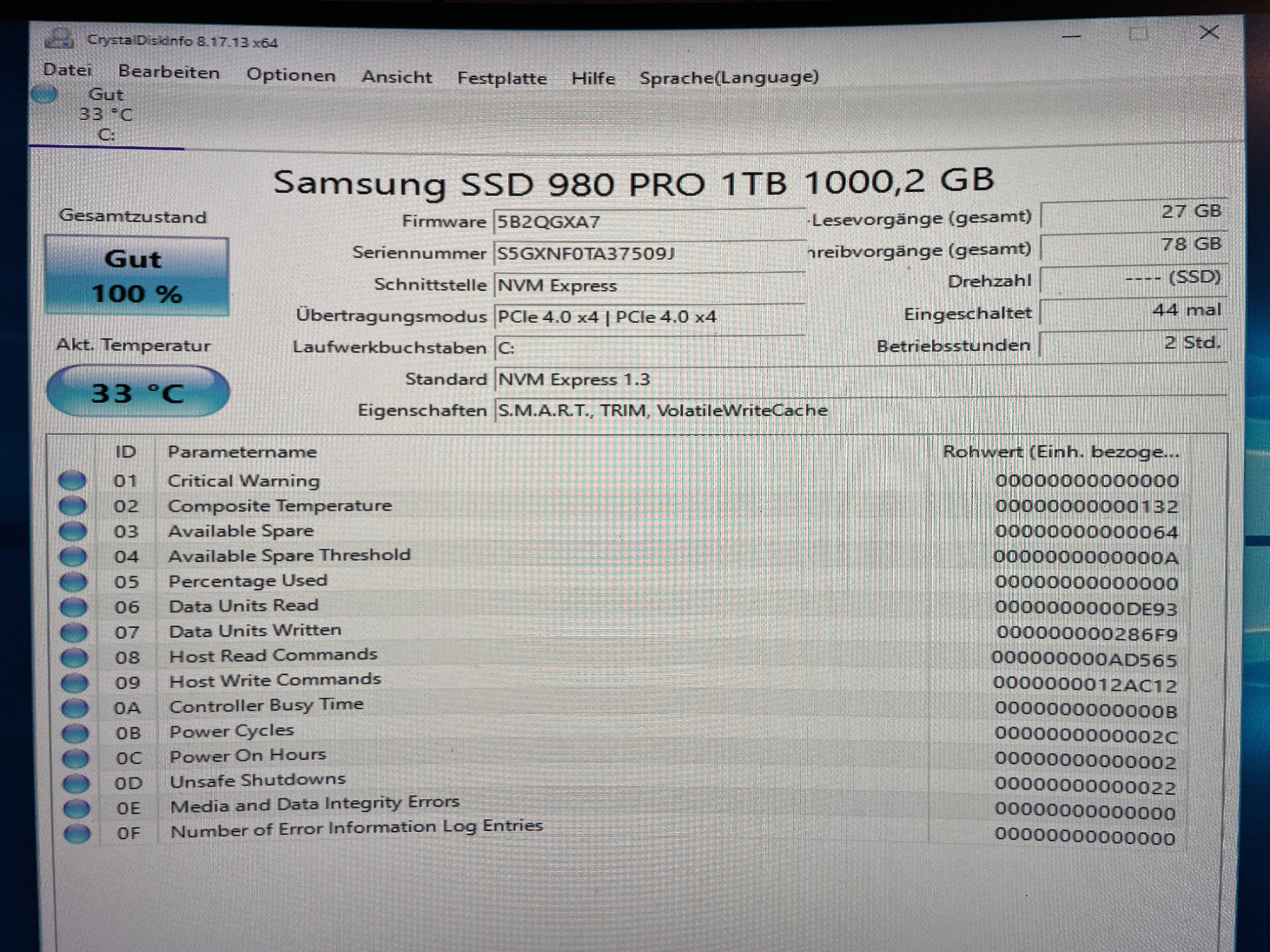 1TB Samsung 980 Pro M.2 PCIe 4. 3D-NAND TLC - Weitere Hardware, die offensichtlich mit dem Problem zu tun hat(Monitormodell, Kühlung usw.):