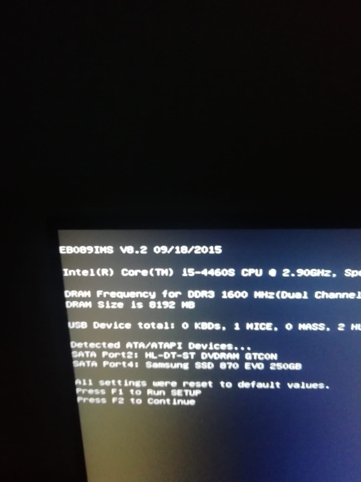 Weder das Drücken von F1 oder F2 funktioniert. F2 keine Reaktion und F1 erscheint "Entering SETUP..." allerdings hier auch kein Erfolg.